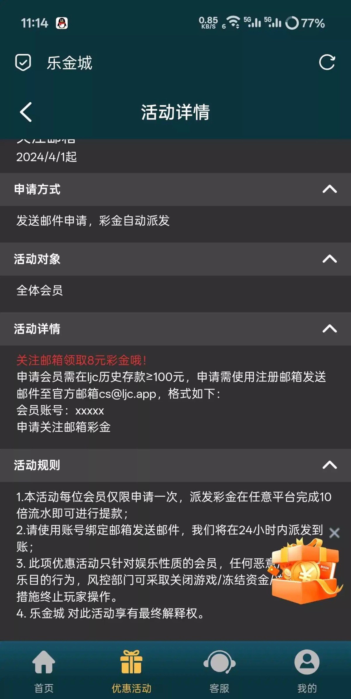 【乐金城】--✅--关注邮箱彩金